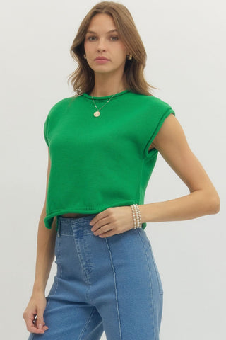 Solid long sleeve knit top featuring contrast collar and contrast stripe detail
