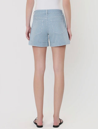 Botanical print sleeveless mini dress featuring striped contrast collar V-neck