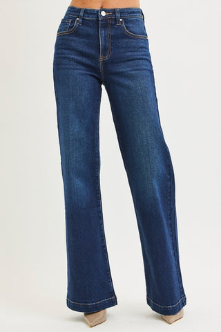 Solid wide leg knit pants featuring elastic waistband with drawstring.