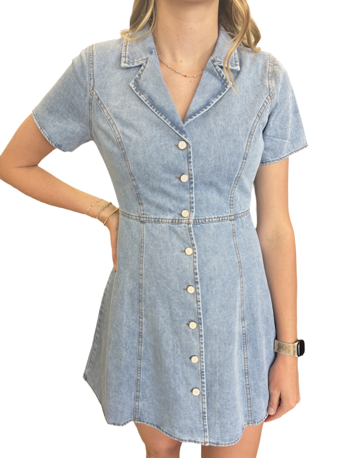Light Denim Snap Dress