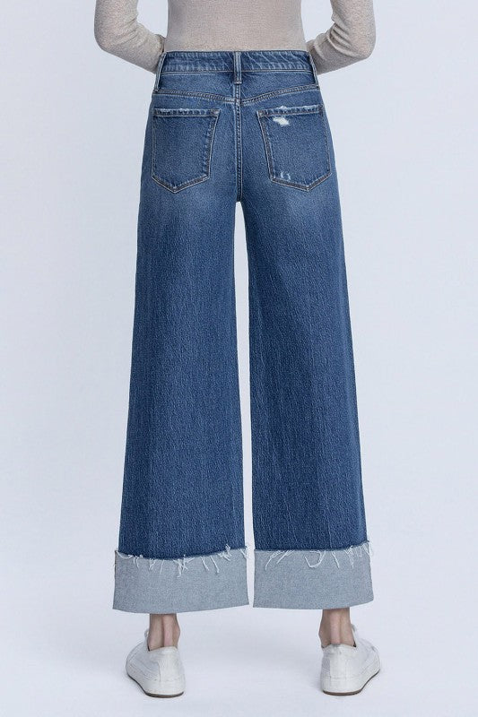 - High Rise Cuffed Ankle Wide Jeans