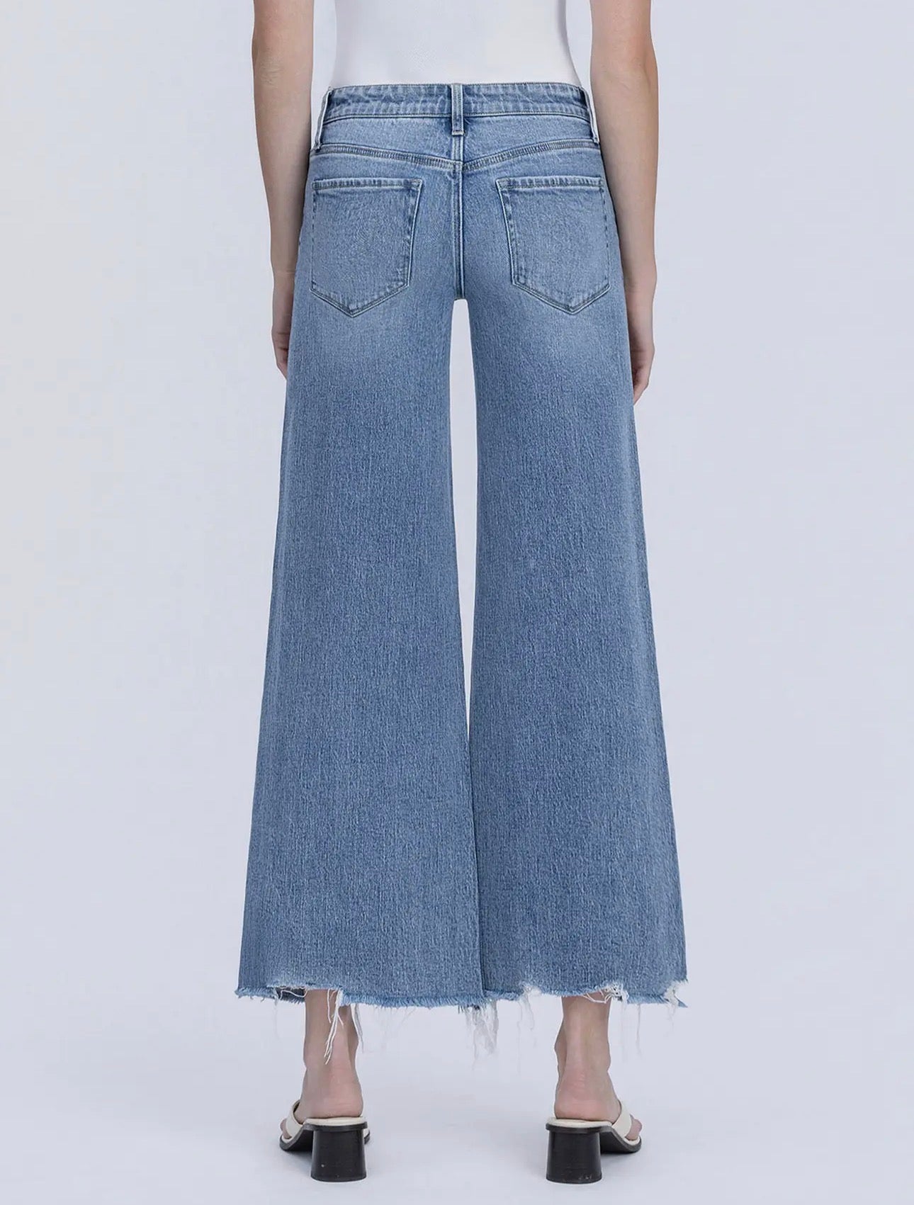 - HIGH RISE RAW HEM SLANT SIDE SEAM WIDE LEG JEANS