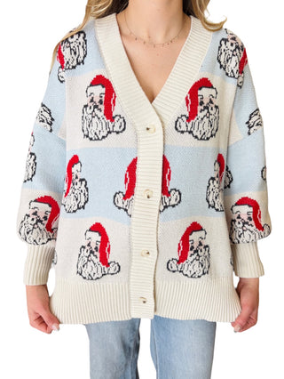 Santa Claus & Checker Pattern Oversized V Neck Cardigan