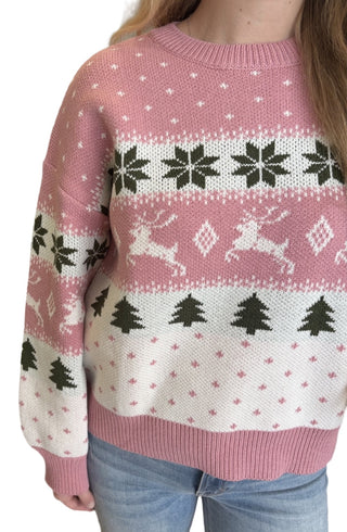 Long Sleeve Crew Neck Fairisle Pattern Sweater