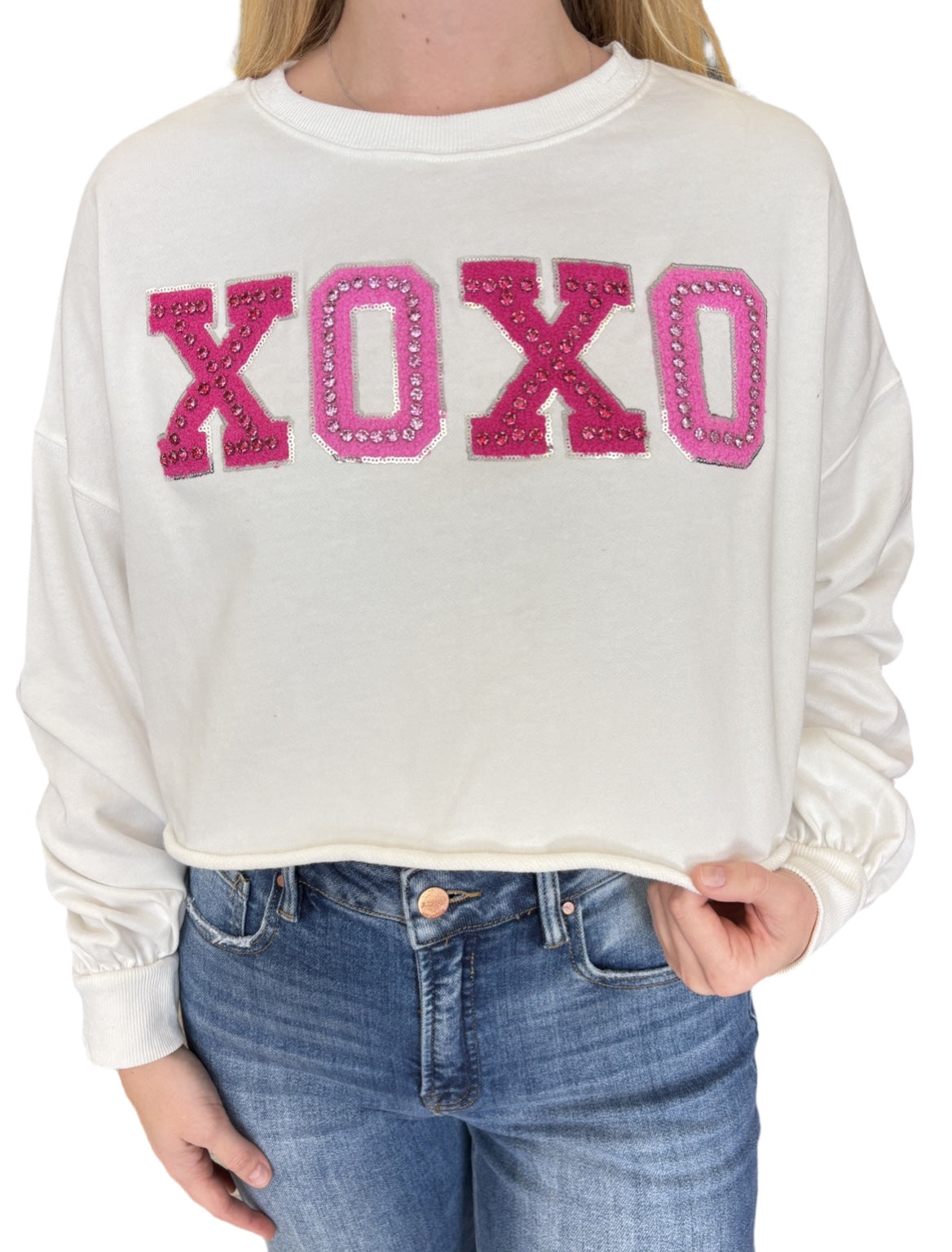 - XOXO Towel Graphic Crop Sweatshirt