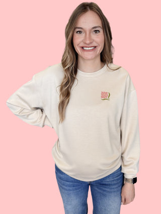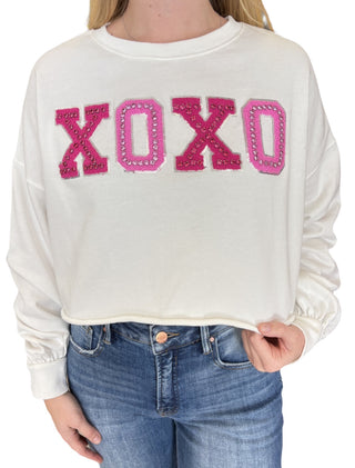 Solid long sleeve knit top featuring contrast collar and contrast stripe detail