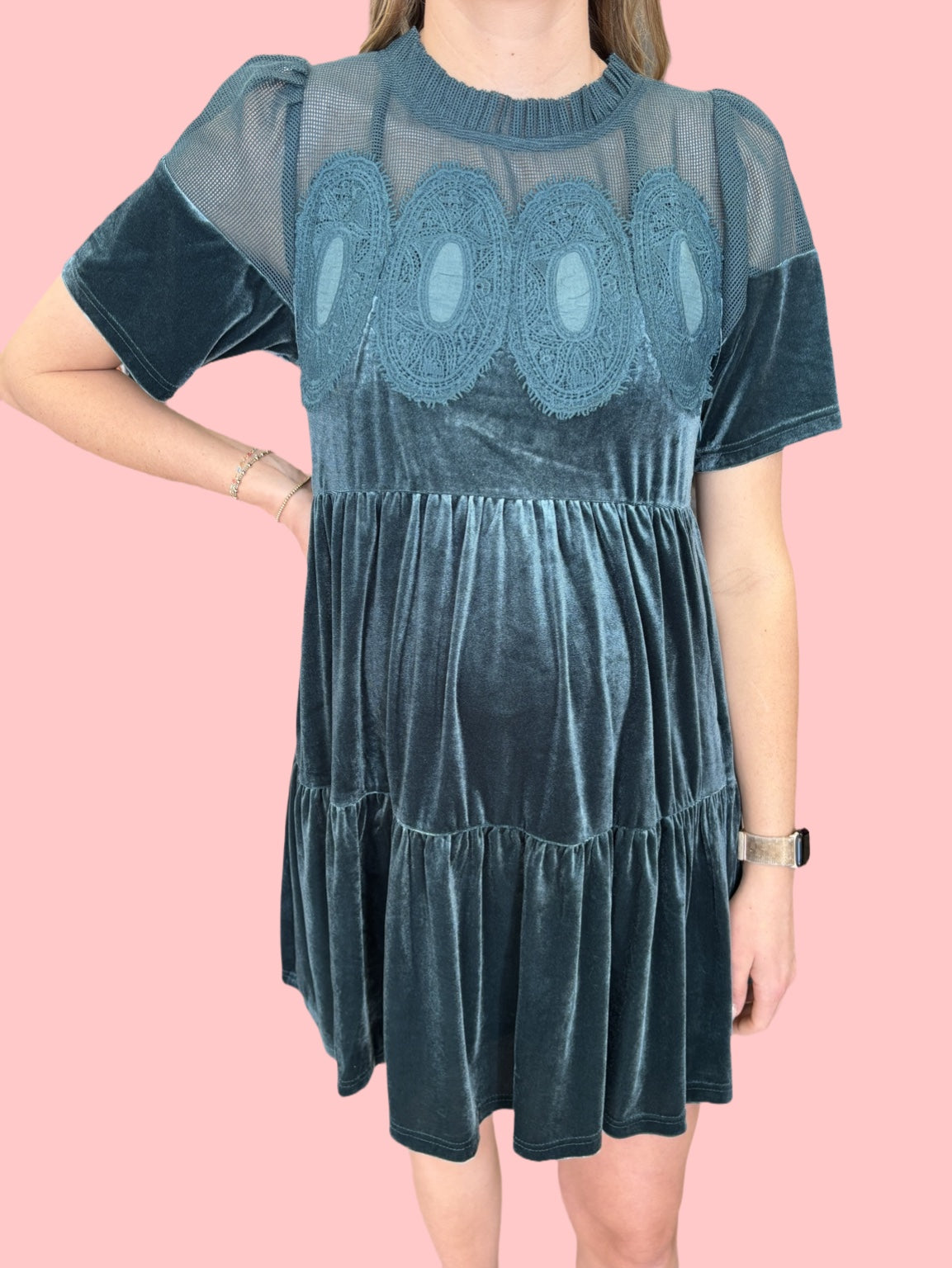 - Contrast Sheer Mesh Panel With Intricate Lace